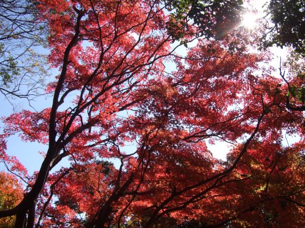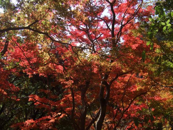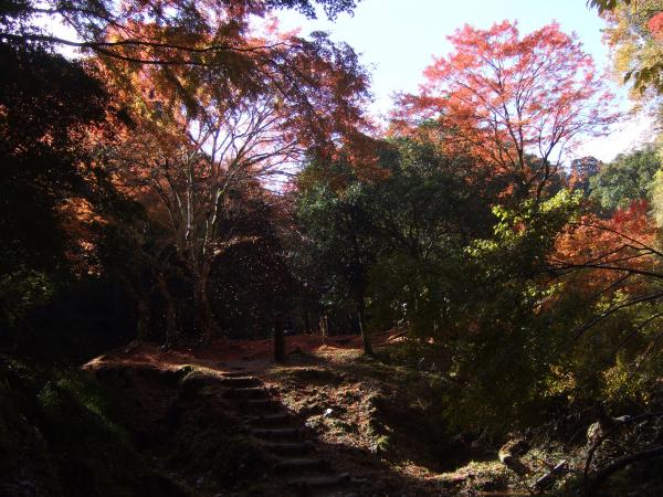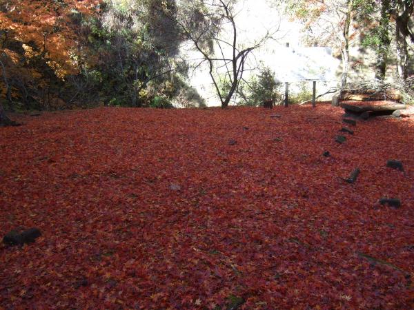 日高邸跡は休憩には絶好の場所です。紅葉の絨毯が出来ていました。山を見上げた雰囲気も良いです。