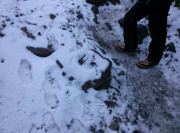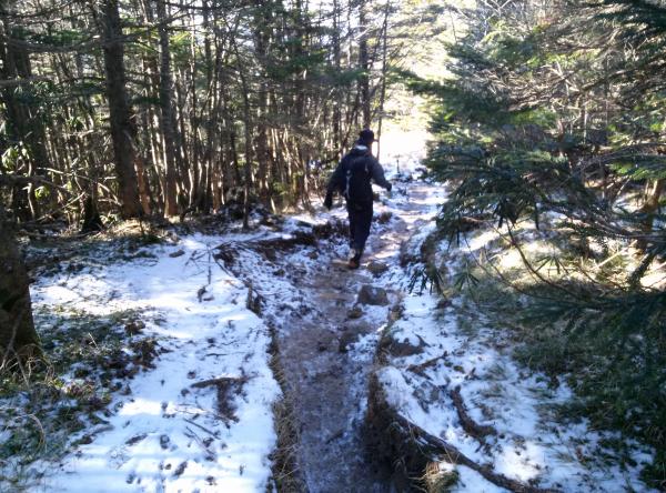 - 表コース、中コースともにやや積雪していましたが、アイゼン無しでも大丈夫でした。