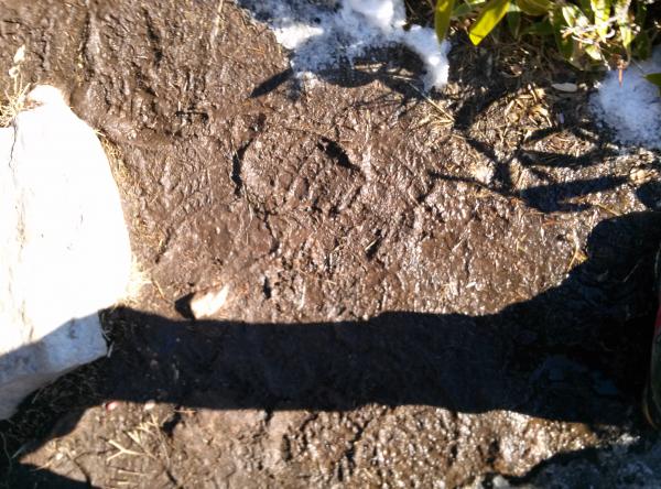 トーミの頭から山頂の間は日当たりが良いため雪は融けていましたが、なかなかの泥道が続きます。