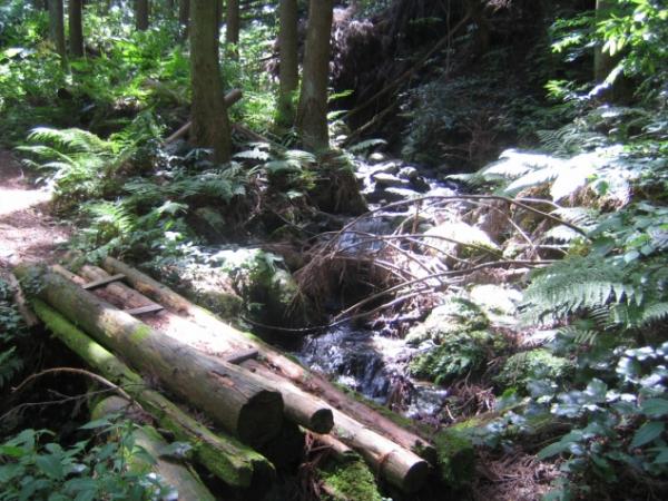 - キトク橋>20分>洗谷登山口>10分>入渓点>145分>雷山山頂>50分>縦走路分岐>40分>アンの滝分岐>20分>キトク橋