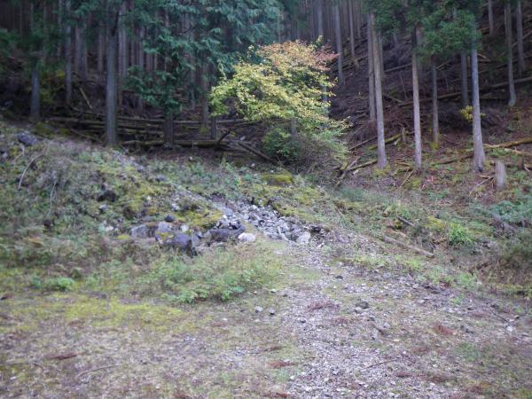 ②水谷林道は取水ポンプ場で舗装路がなくなり、そこから先は荒れています