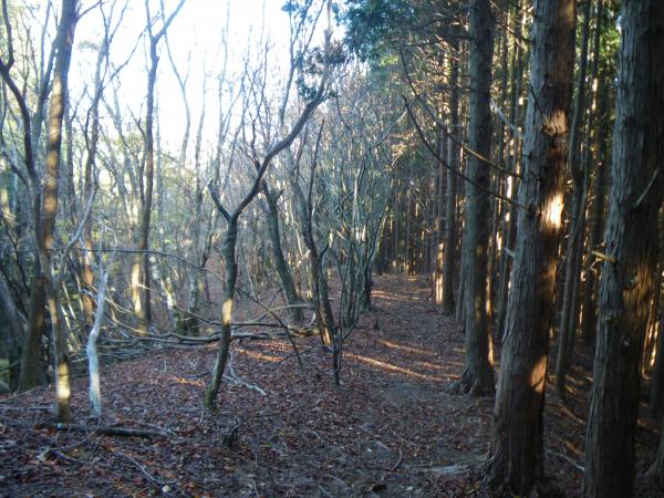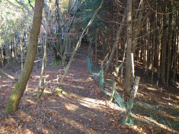 ⑧杉平峠~山頂までは緩やかな尾根で、鹿よけネットが右手にあります