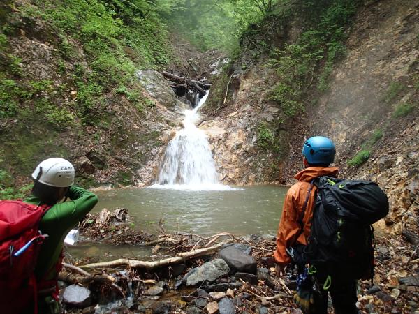 久々の沢。シーズン初めだし昨夜の雨もあり出合の水は濁り気味…緊張し気が引き締まります。