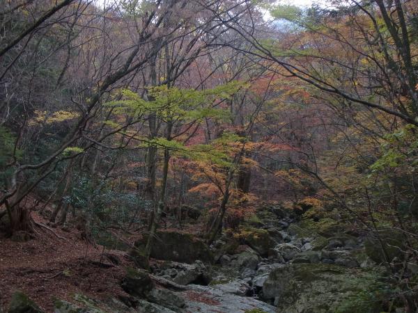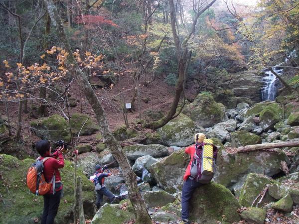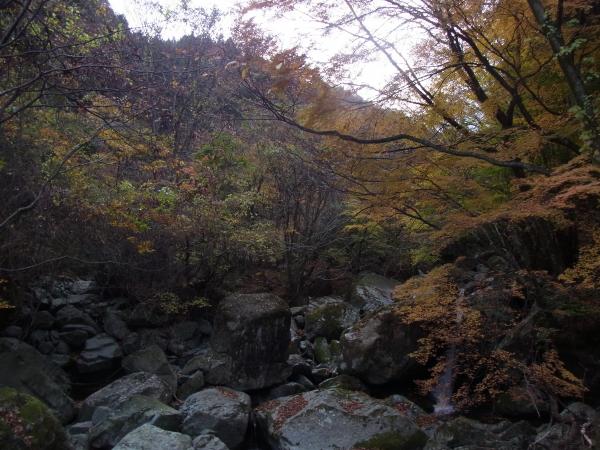 この近辺は紅葉がまだ少し残っており、沢や滝との雰囲気がとても良い感じ。