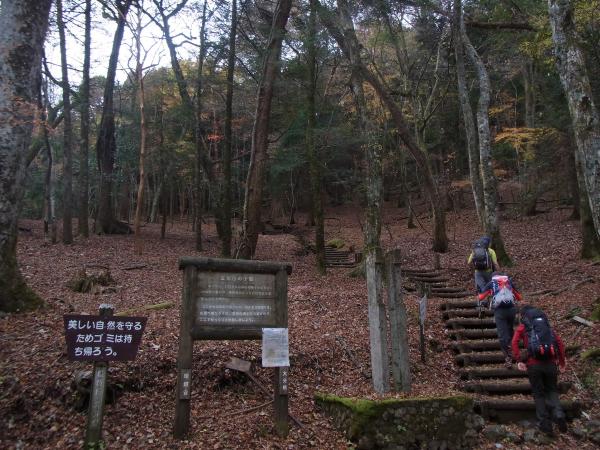 ここから傾斜が急になります。ちょっとした岩場、ロープも出てきます。