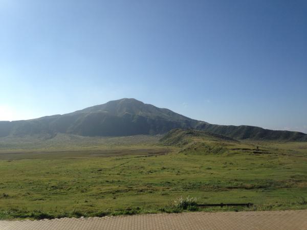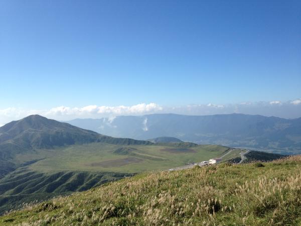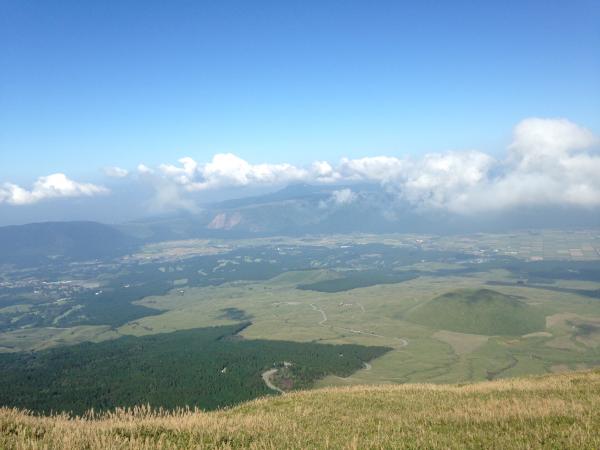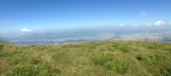 広々した山頂からは阿蘇山がドンっと見える大展望。