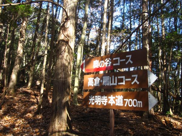 - 第3駐車場20分扇山登山入り口30分扇山5分見晴らし台20分光明寺30分奥の谷コース分岐50分光明寺地区と奥の谷コース裏道との分岐10分角尾山2時間45分高倉・奥の谷コース入口35分第3駐車場
