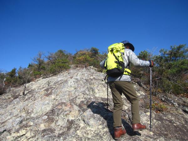最初はシダやウラシロが生えた道を進みますが、すぐに尾根に出ます。岩肌が出ているところも登りやすいのですが、今日は強風で風が冷たかったです。