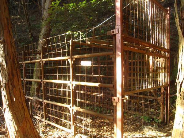 いたるところにイノシシが掘りおこした跡がありました。また、高倉・奥の谷登山入り口付近に、大きな檻が仕掛けてありました。イノシシか、熊か??!