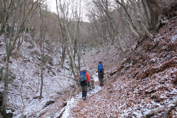 登山口から、森へ入るとうっすらですがだんだん雪が出てきました。