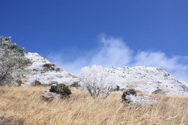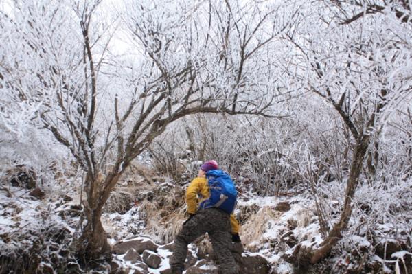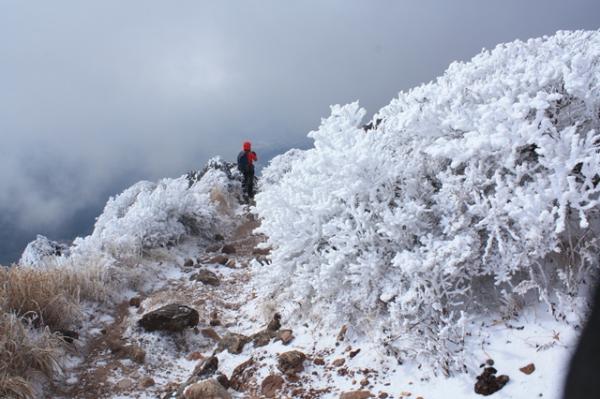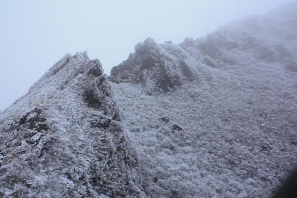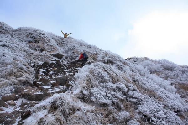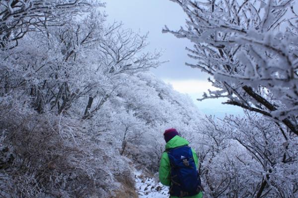 上っていくうちに霧氷がびっしりついていてとてもきれいでした。