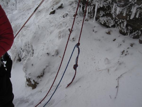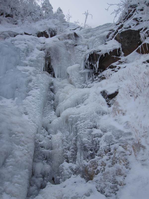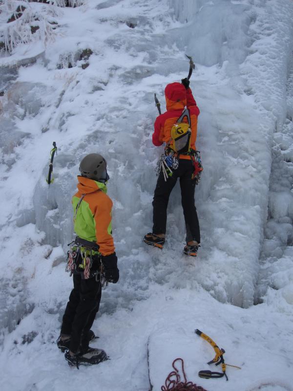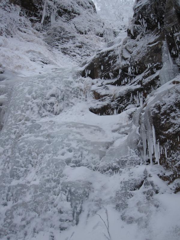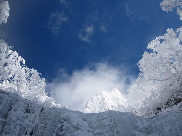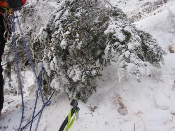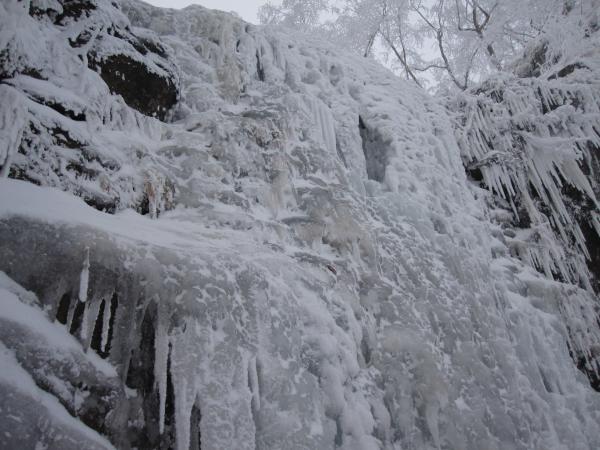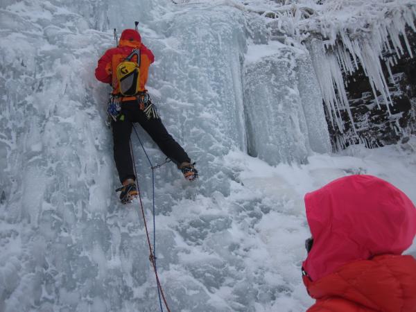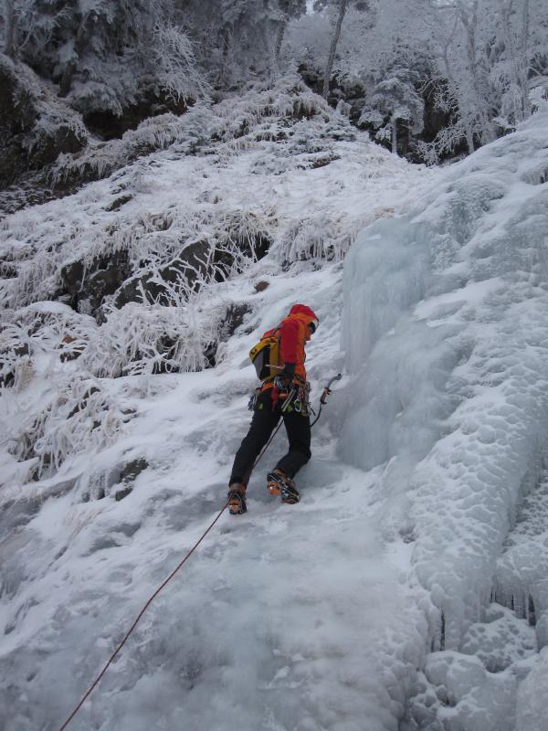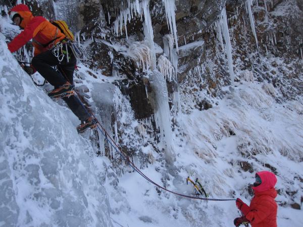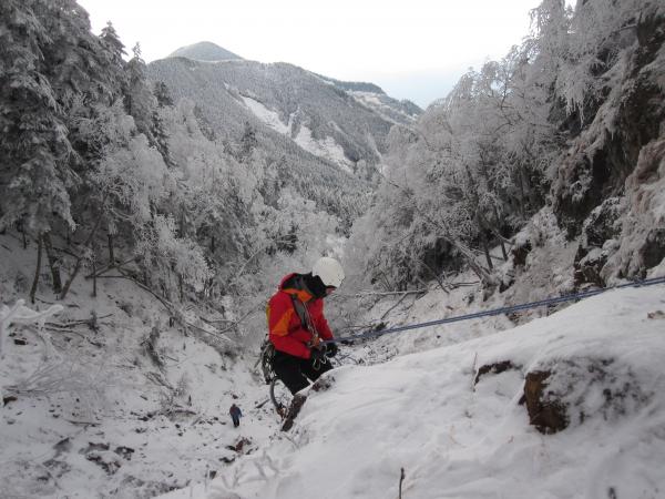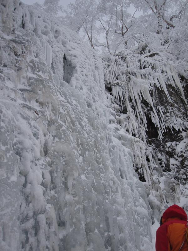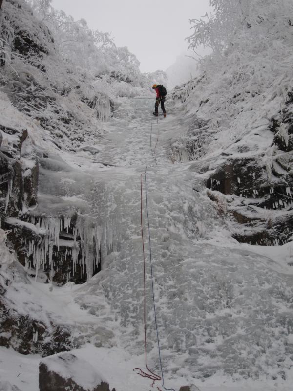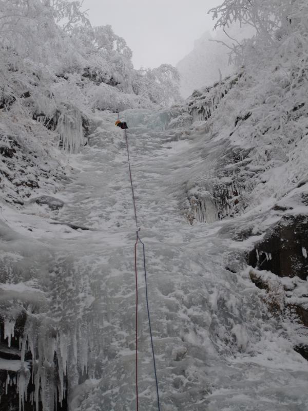 アイスの懸垂下降も初めて。60mのロープを2本繋いでF2を一気に下りた時は、強いハートになれました。木に付いた雪がとってもキレイで、白の世界が素晴らしかったです。楽しかったですー。