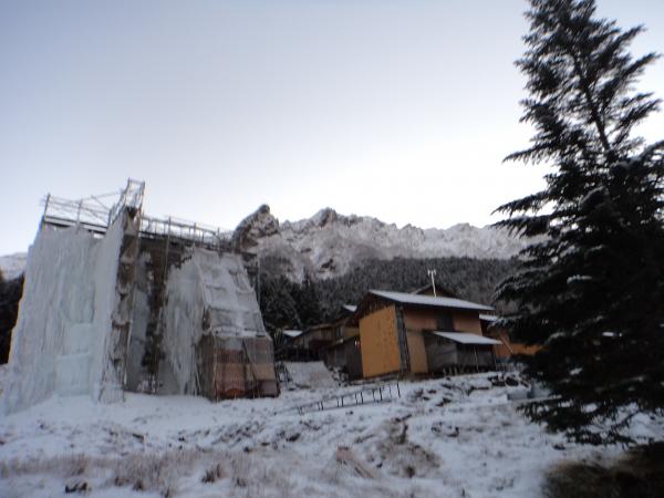 - 赤岳鉱泉までは雪はほとんどなく、部分的に前日の雨が凍っていました。