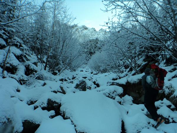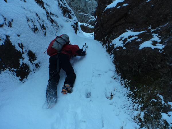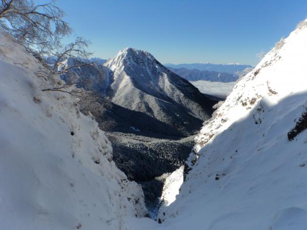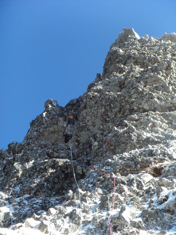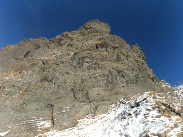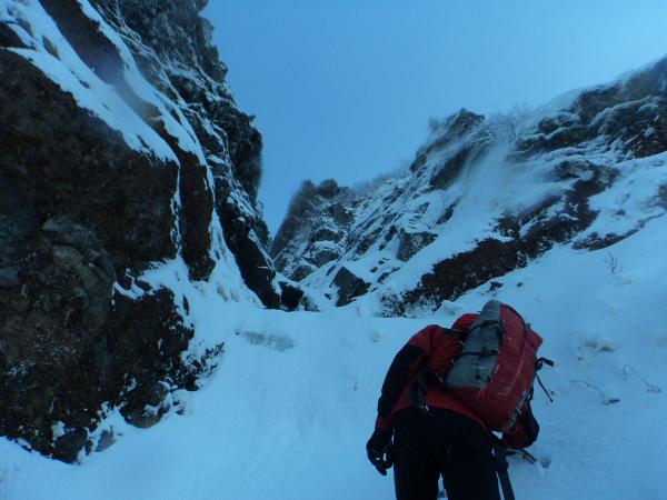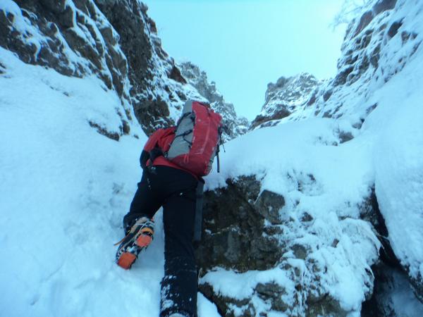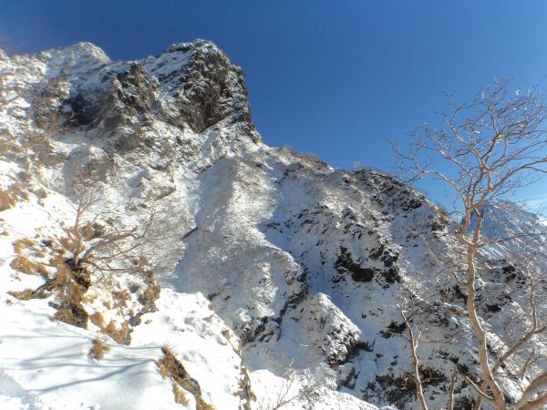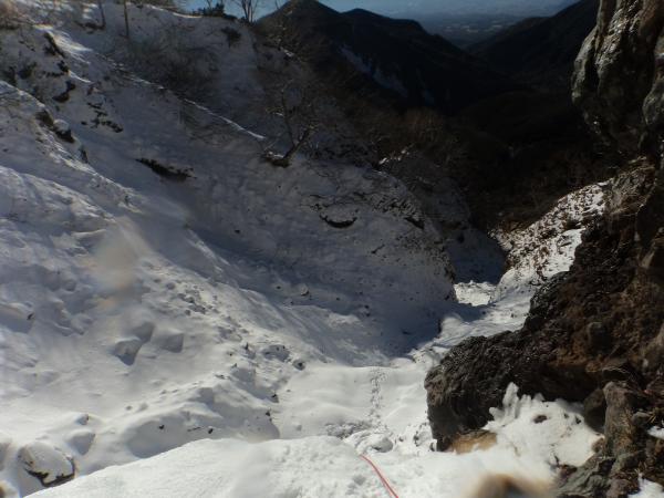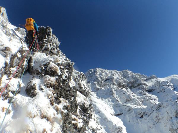 小同心ルンゼは雪がしっかり詰まっており、登りやすいルンゼでした。部分的にいやらしい乗り越しがあり怖かったです。