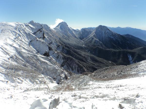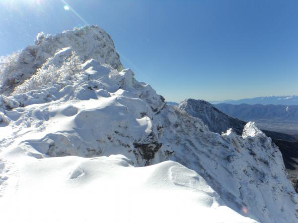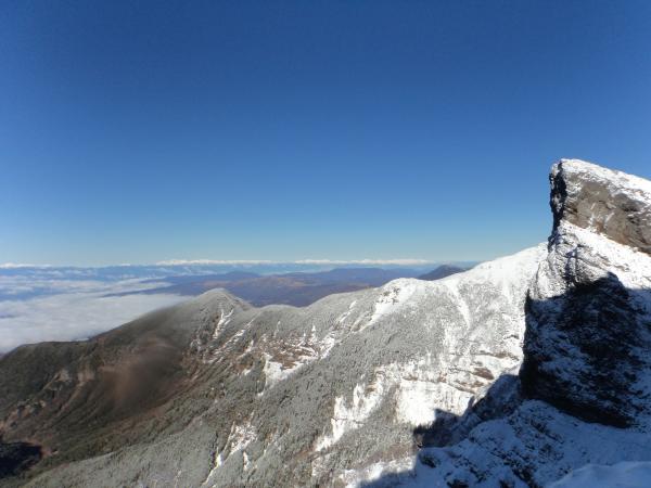 八ヶ岳の稜線ももう完全な雪山となっていました。この日は無風快晴で、北アルプスも全部見える程の好天!歩いてるだけでもとても楽しいです。