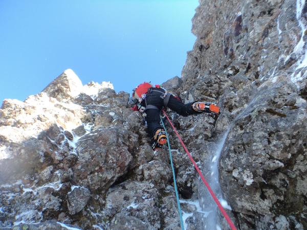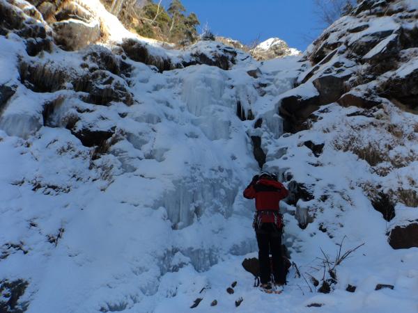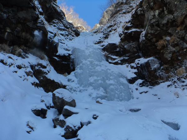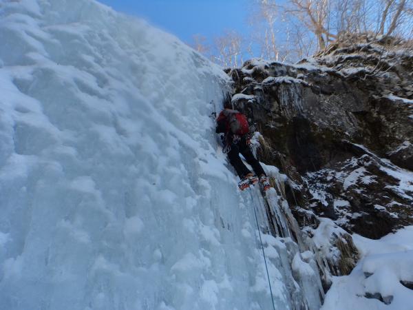裏同心ルンゼはばっちり凍っていました。すこし濡れた氷ではありましたが、快適な登攀を楽しむことが出来ました。