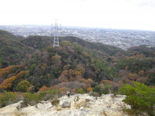 縦走中はあまり展望は楽しめませんが、鉄塔が並ぶところからは大阪方面の展望が楽しめます。