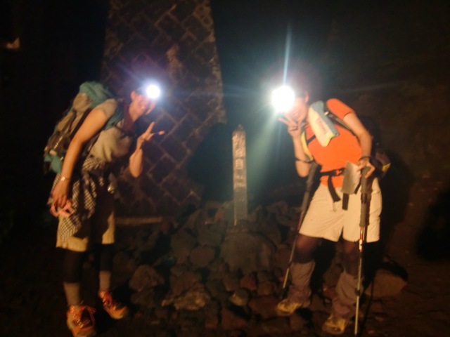 22時から登り始めたので、まっくらで景色は見えませんでしたが、夜中なので涼しくて、テンションあげあげでいけました(^O^)/