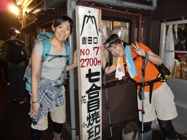 - 河口湖五合目22:00→六合目22:45→七合目24:00→八合目3:00→九合目4:30→吉田口山頂5:15