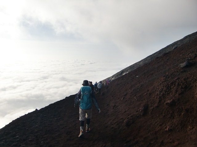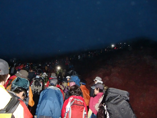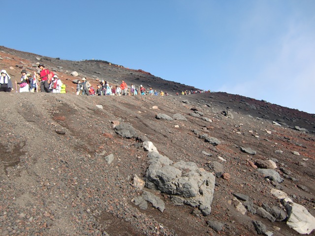 7合目あたりからは山小屋で休んでいた方たちが合流して、渋滞が続きます。