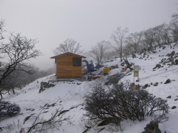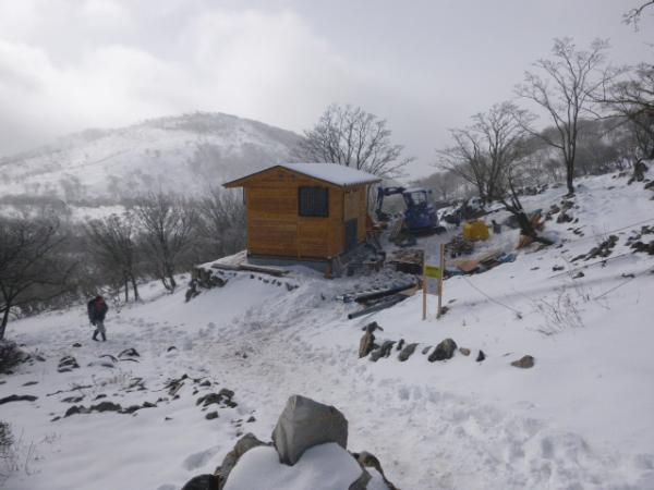今回、藤原岳に行ったのにはアクセスが容易ということもありますが、山頂のお手洗いを新築中との噂を聞いていたのでそれも見に行くという目的もありました。年内には完成予定ということで作業されている方はずっと泊まりでされているそうで、山荘の中には大量の水や食料などがありました。