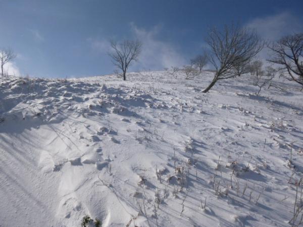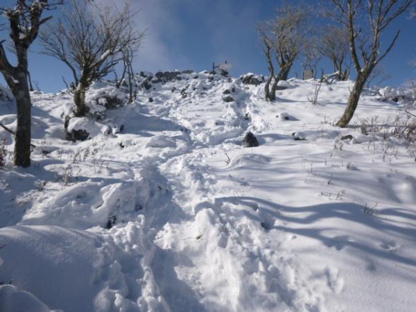 踏み固められている箇所もありますので特に下山時に軽アイゼンやチェーンスパイクといった装備が必要です。