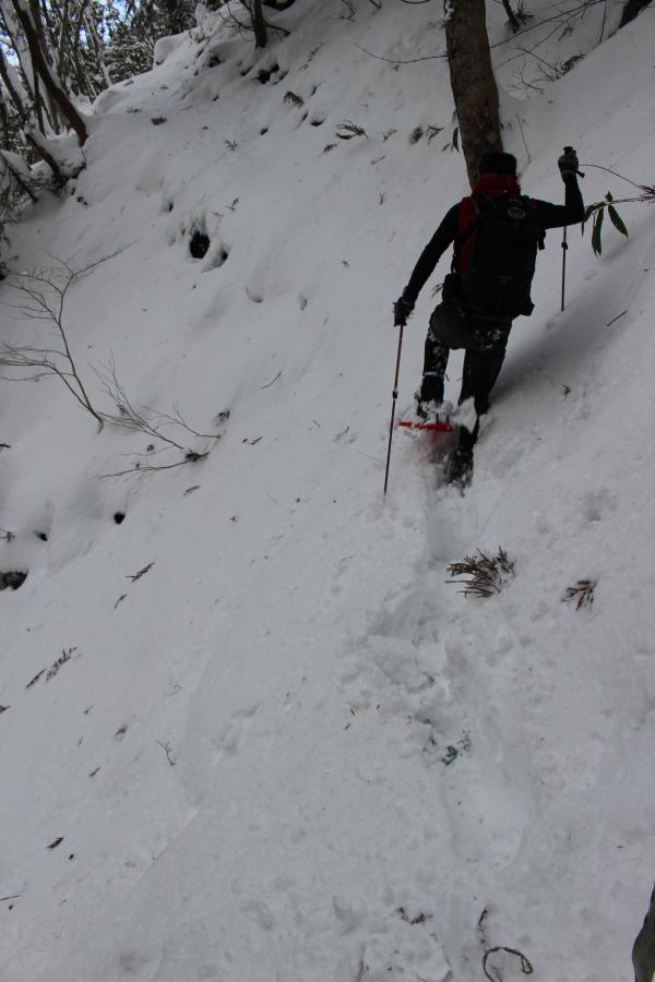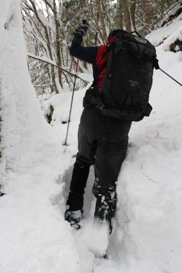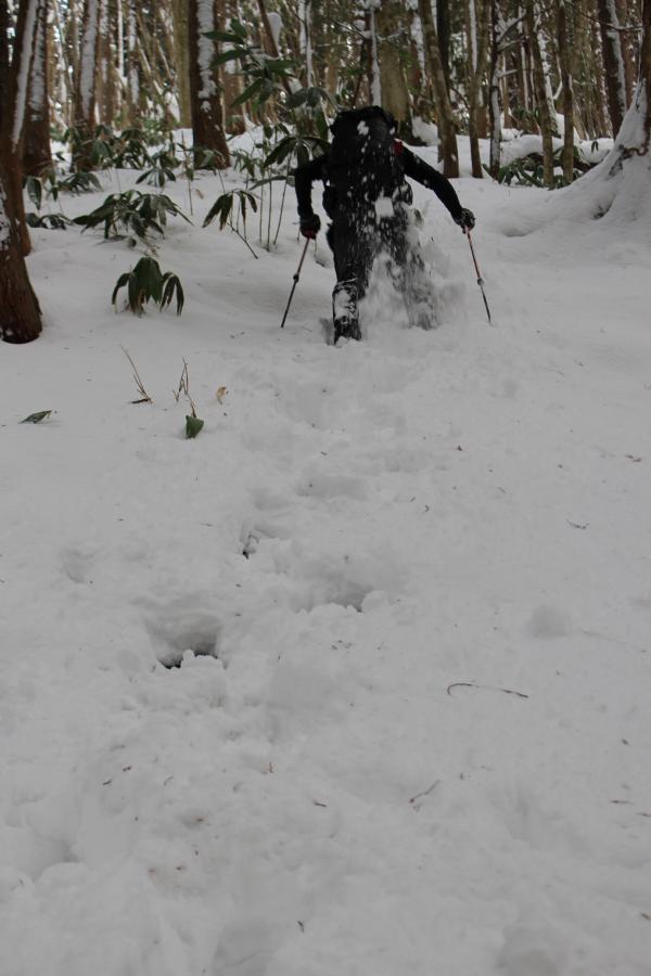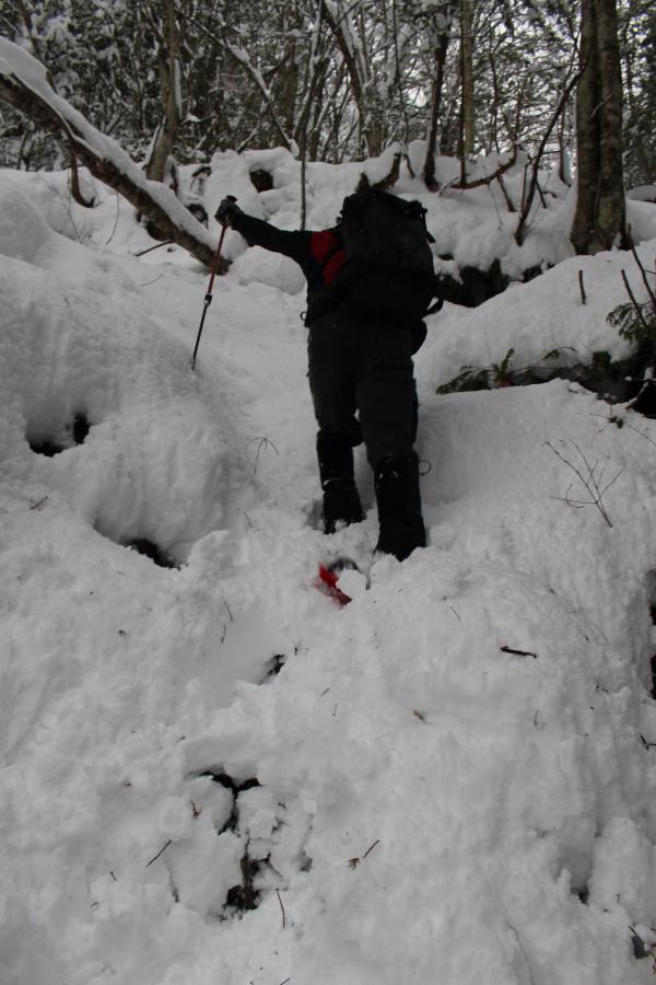 登山道はトレース無し、積雪は膝上までありました。