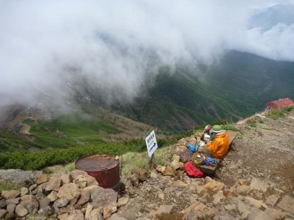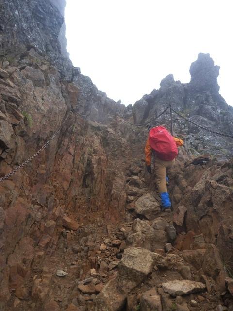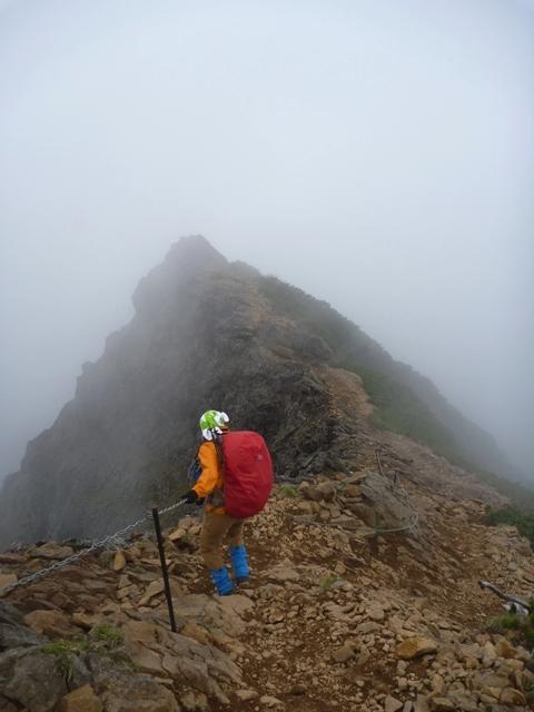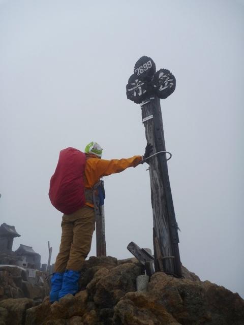 頂上はガスっており、南アルプス方面景色は望めませんでしたが、赤岳天望荘まで
