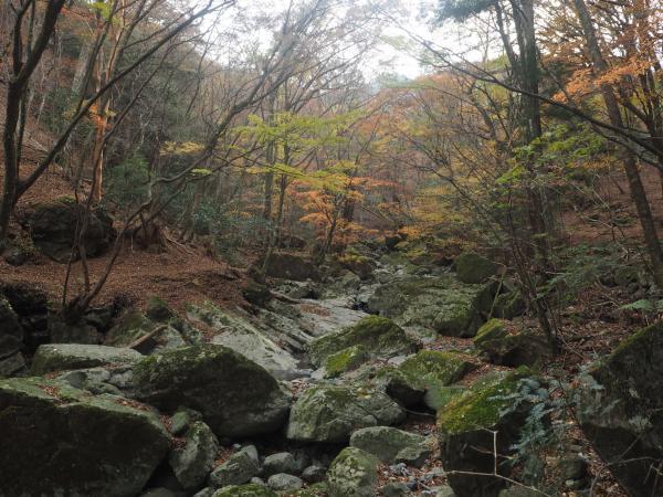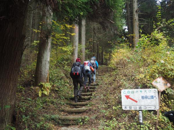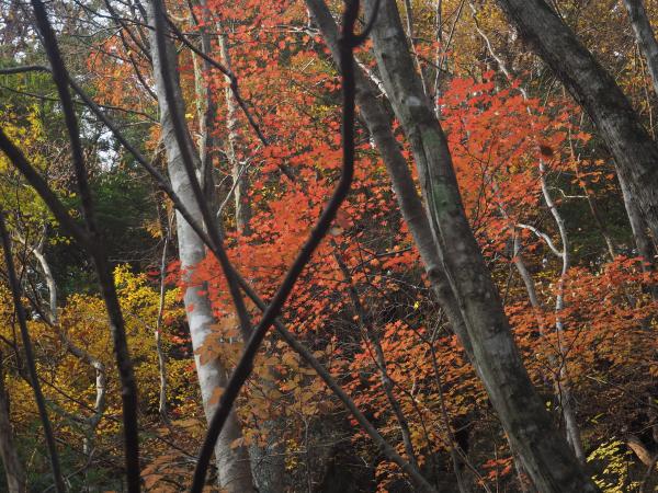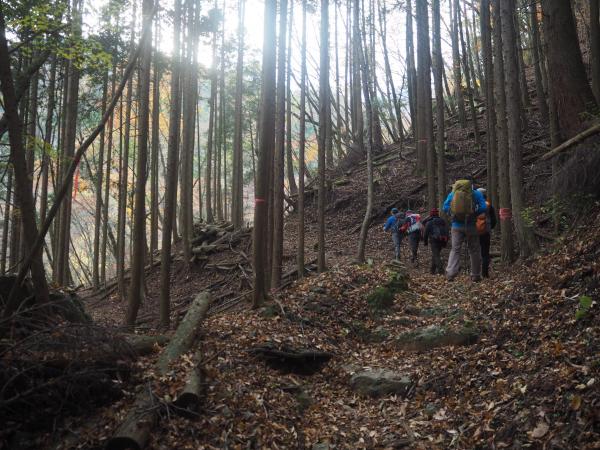 のんびり休憩したら下山開始。ぐずぐずの登山道を慎重に進み、落葉で埋もれて滑りやすくなっている登山道を慎重に進み、時に走り、時にへっぴり腰で、、、、、
