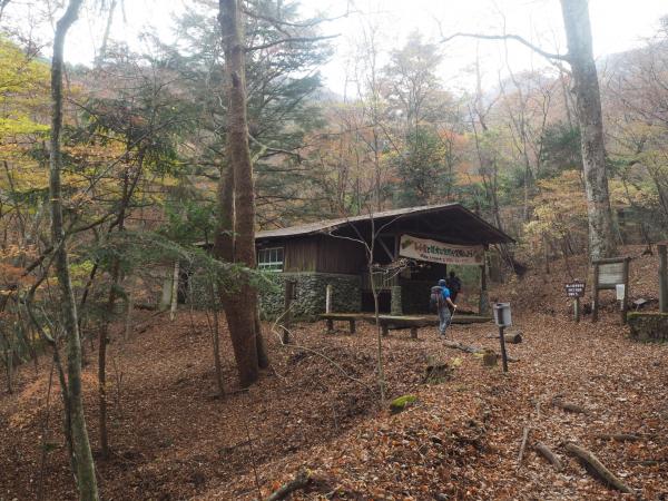 スタートしてカラダが暖まってきたころ五合目小屋に到着。とても綺麗な無人小屋で沢の音を聞きながらここに宿泊(宴会?)するのもいいかもしれません。