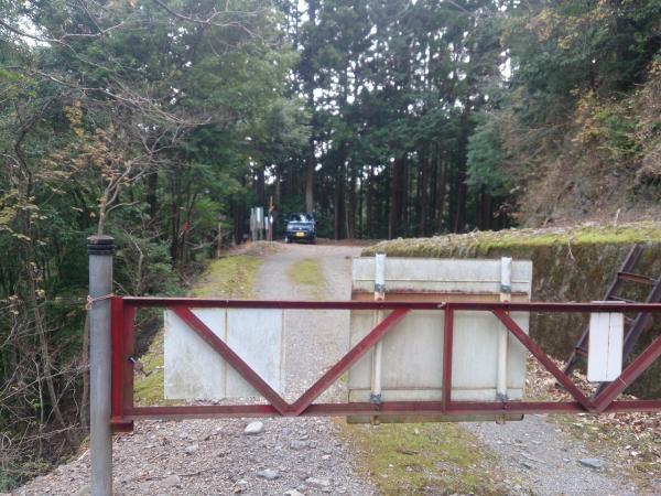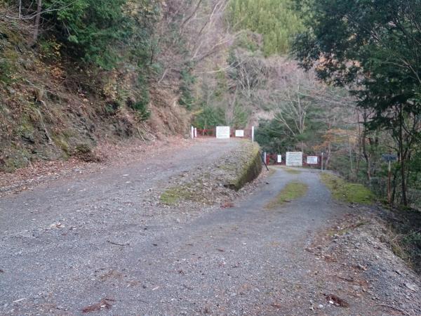 その後、水力発電所を通過すると、林道ゲートまで細い道になります。距離表示があり、7.5kmの辺りから未舗装になります。不安になりますがこの道で合っています。10km地点に林道ゲートがあります。