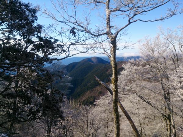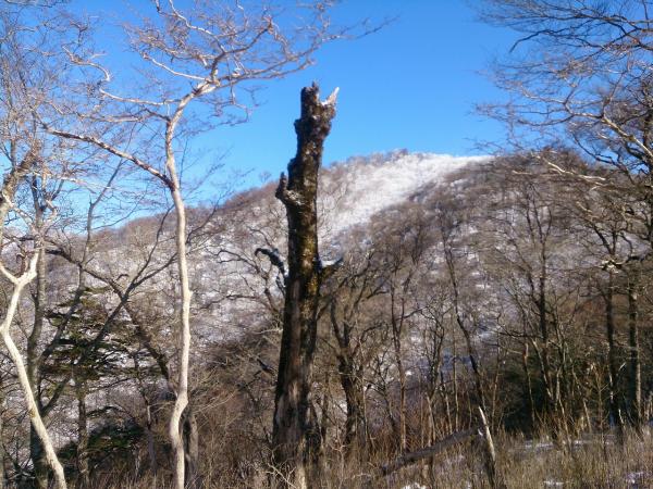 林道からこれから登る高塚山方面が見え、山頂付近が白くなっていてテンションアゲ♂アゲ♂でした(笑)