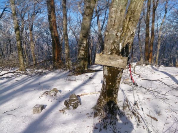 晴れていればそんなに地図とコンパスを駆使するところはありませんが、周辺の山がよく見えているので、山座同定の練習とかもできます。車2台あれば高塚山から竜馬ヶ岳・岩岳山へ向かうとルートを使うとさらに道は不明瞭みたいです。