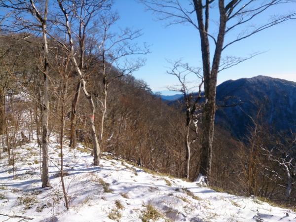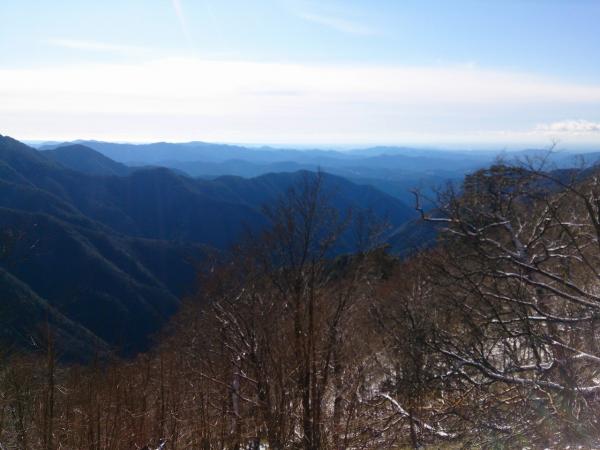 正しい尾根に戻った後は藪漕ぎもありますが、ほとんど枯れているのでバキバキいけます。相変わらず踏み跡とテープはわかりにくいですが、黒法師方面や浜松方面など右も左も景色がとてもよく、気持ちいい稜線歩きが楽しめます。