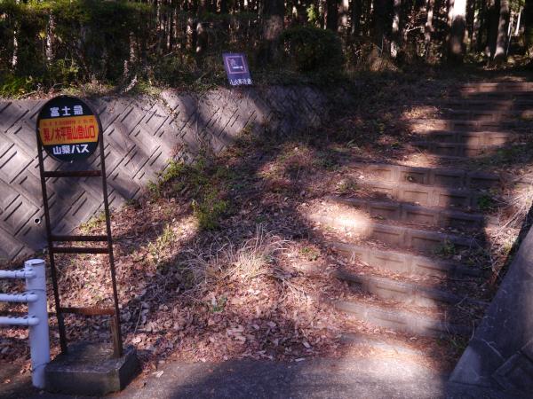 バス停はありますが、シーズン休日のみ鳥沢駅からバスが出ているようですが、ここから鳥沢行のバスはないようです。