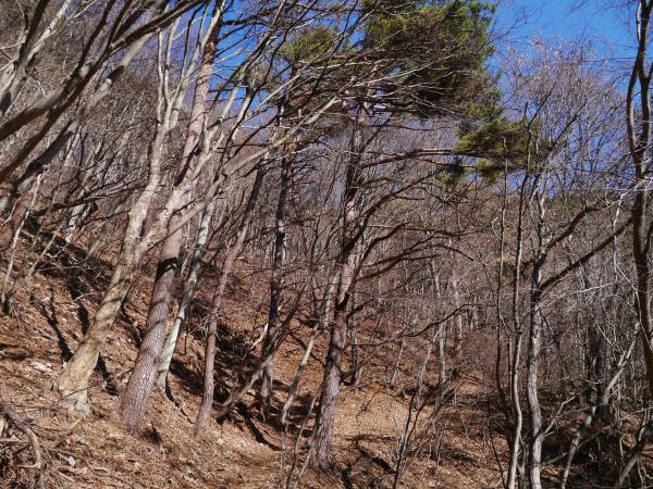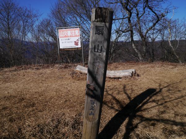 植生が雑木林に変わりきつい傾斜をひと頑張りで稜線に出ます。稜線から扇山の山頂はすぐでした。