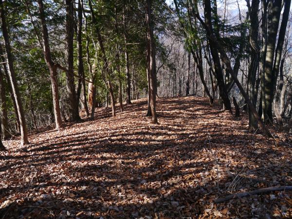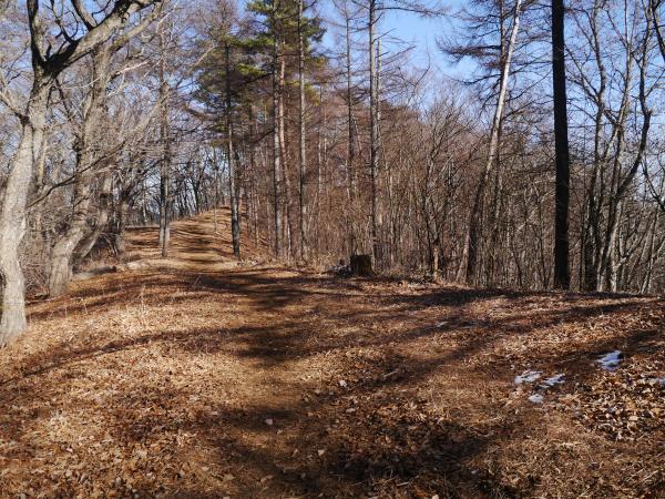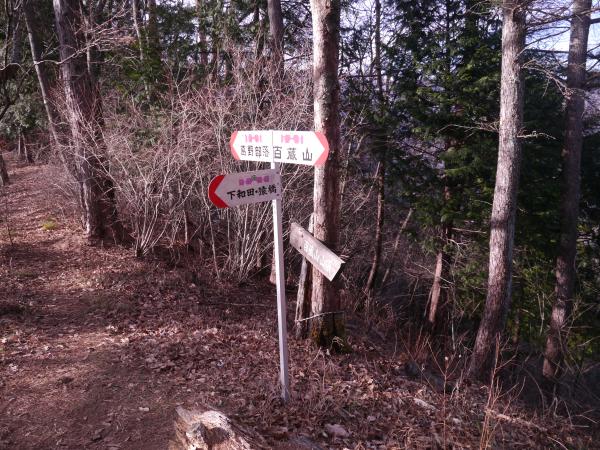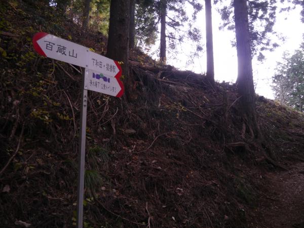 さて、来た道を戻り百蔵山へ向かいます。落ち葉交じりの急坂を下ります。
