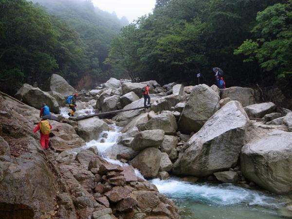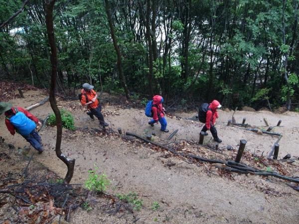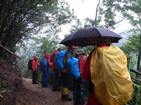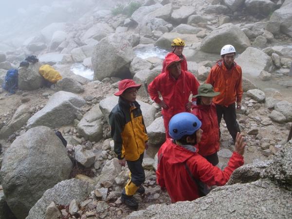 生憎の雨予想でしたが、雨具着用で濡れた岩場の通過などの練習をしました。