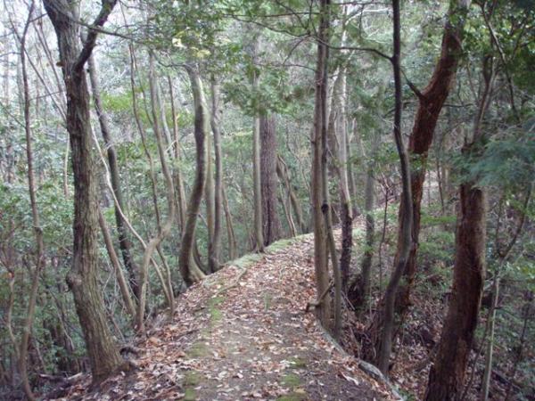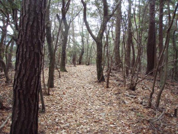 住宅街を抜け山裾の左側の林道を進んで行くと、トトギ池の横で登山口の標識を発見。石のベンチに座って小休止後、ゆっくりと山道を登り始める。適度な傾斜の斜面に落ち葉が積もっており、たまに足元が滑るので下りは要注意です。