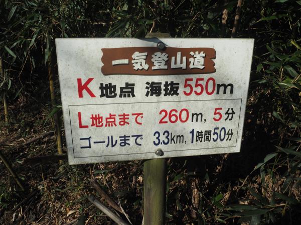 車はロープーウェイの駐車場に止めます。そこから少し由布方面に戻ると鳥居が見えてきます。そこがスタート地点。15分程登ると火男火売神社に合流しますがその途中でアルファベットの書かれた看板を発見。このアルファベットの看板が2~300mおきに設置されていてルートを案内しているようです。スタートしてすぐにあった看板はすでにK地点。実は鶴見岳には海抜0mから1375mの山頂まで自動車道を一切通らない12kmの一気登山道なるものがあり、そのスタートがA地点のためここはすでにKまできているということになります。ありがたいのか、まだまだ先だよと言われているのか、、、