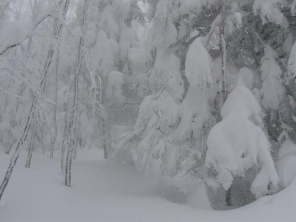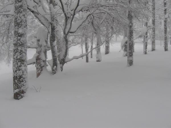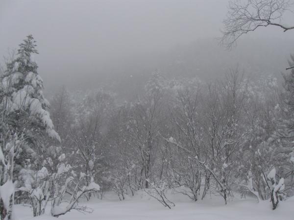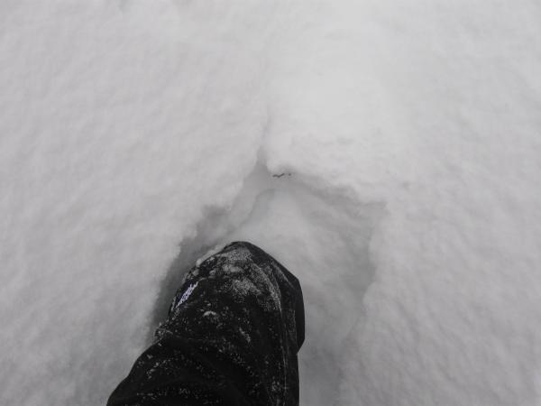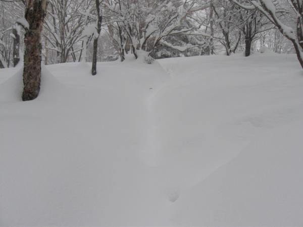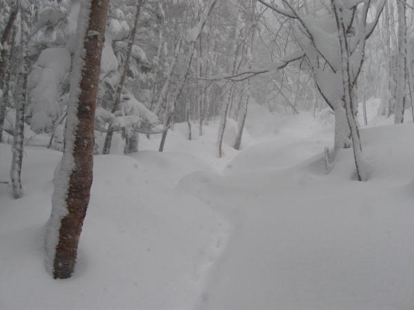 ○登山口~2110m地点までは膝丈のラッセル、2110m地点から先は腰ラッセル
