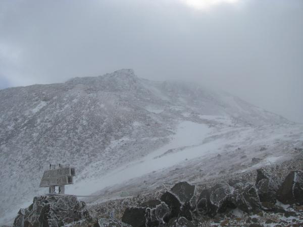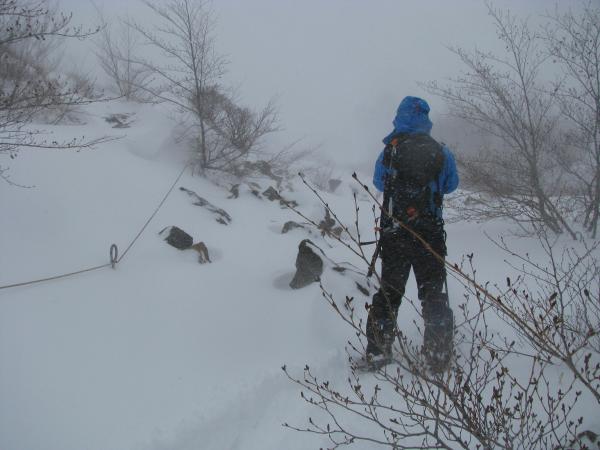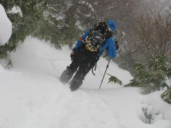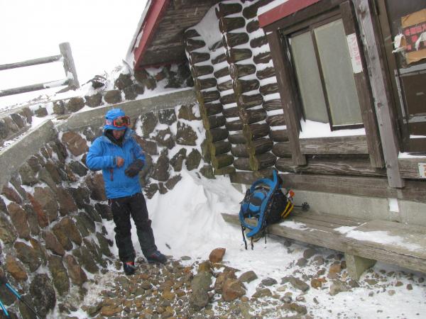 耐風姿勢を取ったり、吹き溜まりにはまったりで予想以上に時間がかかりました。避難小屋より上部は、そうとう過酷なコンディションです。今回は山頂手前で断念、下山しました。
