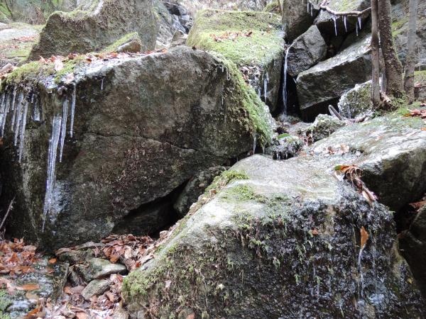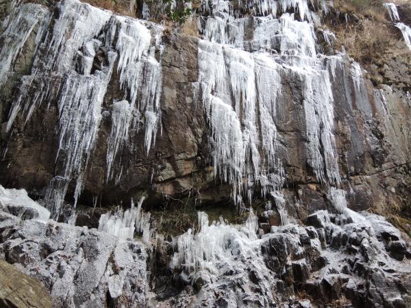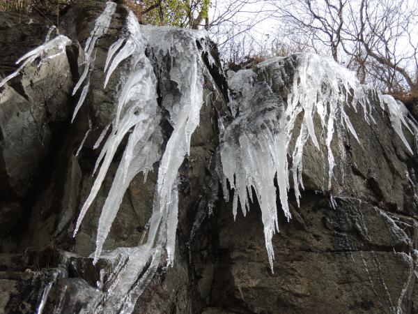 滝の近くで昨年は見れなかった霜柱ができており昨年より冷え込んでいるようです。