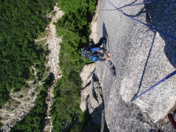 前尾根はマルチピッチのアルパインクライミングからフリークライミングまで、色々なクライミングが楽しめる御在所・藤内壁のエリアの中でも北アルプスのバリエーションルートのトレーニングに最適です。
