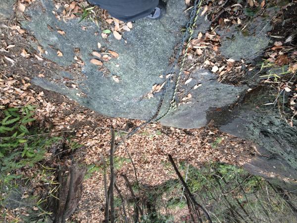 結構な急登で落ち葉だらけ、鎖が張ってありますがスリップ注意です。