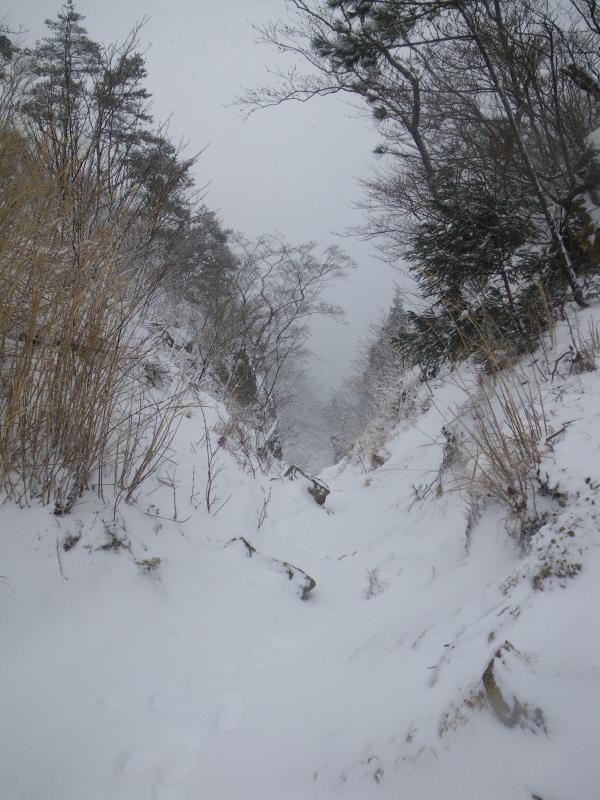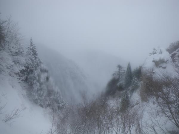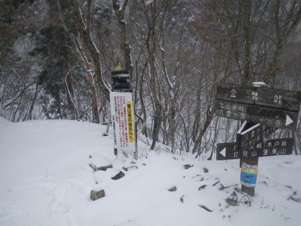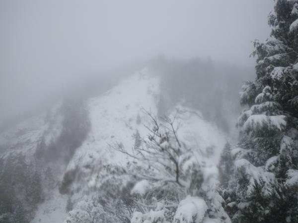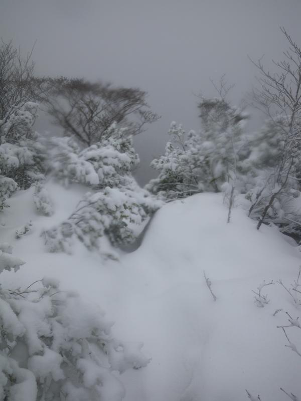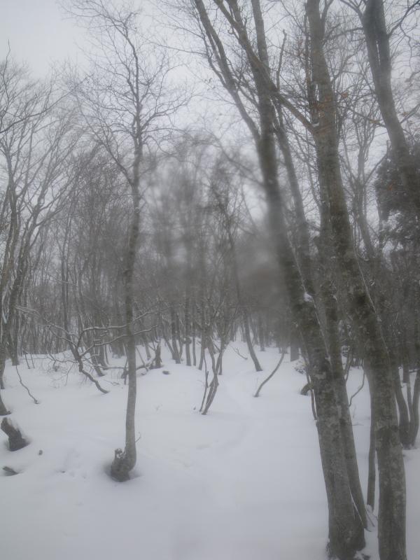 途中、雨から雪に変わってくれましたが、終始展望が無い山行となりました。