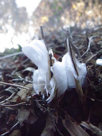 連日厳しい冷え込みが少し緩んだ日だったのでシモバシラも小さいものが多く