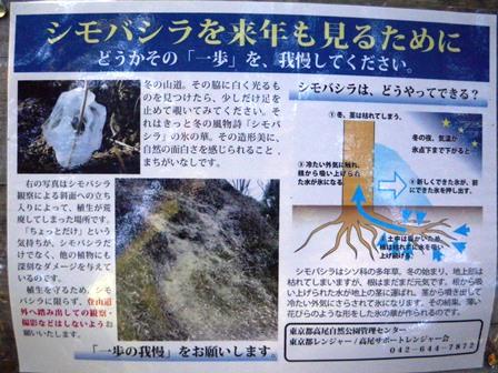 - 高尾山麓駅→70分→5号路分岐→15分→シモバシラ群生地→20分→高尾山山頂→10分→薬王院→25分→高尾山口