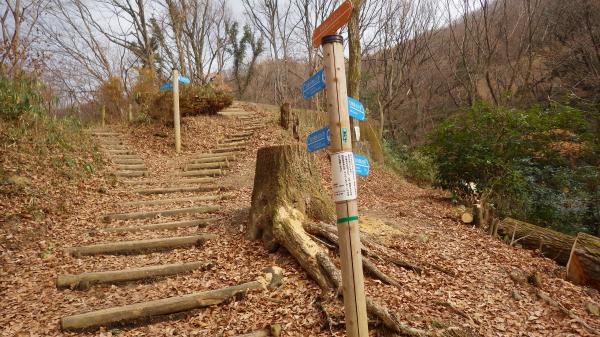 - 近鉄額田駅~10分~枚岡公園事務所~20分~額田山展望台~45分~生駒山上遊園地~15分~興法寺~20分~爪切り地蔵~5分~石切参道~25分~近鉄けいはんな線新石切駅