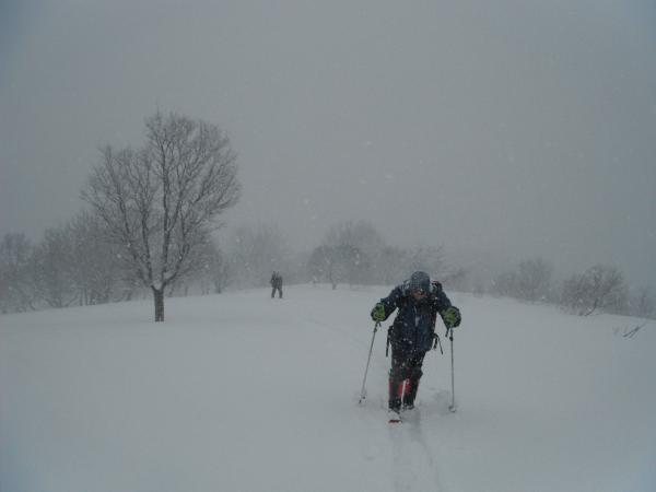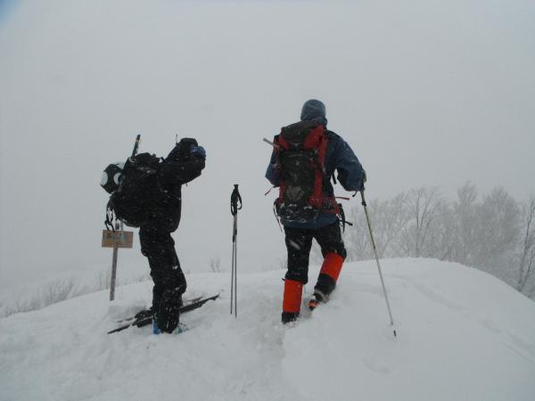 2時間ほどで山頂に到着し、軽く食事を取ってから下山、滑走の準備をしました。